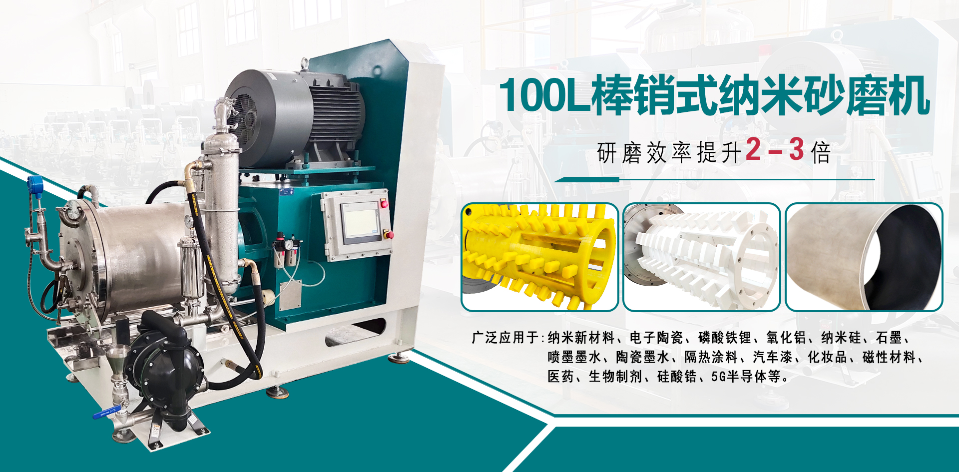 工業(yè)級棒銷動態(tài)砂磨機廣泛應用于微米級亞微米級、納米級的中高粘度物料的研磨,動靜環(huán)間隙出料,棒銷轉子結構滿足不同尺寸、不同研磨細度以及不同研磨工藝的生產(chǎn)需求 臥式砂磨機,適用于對研磨精度要求高的化工物料,連續(xù)封閉式高效率濕式研磨分散。 輸送泵有氣動隔膜泵和圓弧泵、刮板泵研磨介質為氧化錯珠,根據(jù)物料及細度要求選擇介質大小